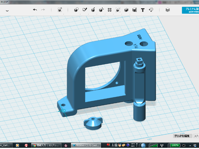 日本製3Dプリンタ Scoovo C170の弱点であるエクストルーダーの冷却対策用パーツです。 PLAとABSで冷却を切り替えできます。 このパーツのほかには20mm角のアルミヒートシンク1個をカットして使用します。ファンはC170のものをそのまま使用します。